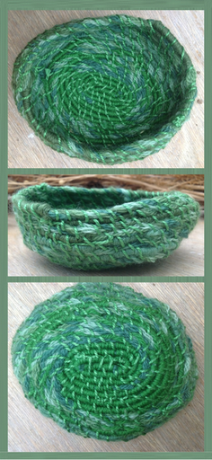 The underlying problem is that the cord itself is too soft. It is firmer where it is bound, but if I bound it completely I'd hide the variegation - and I might as well use washing line, as I did for the first one, which is still my favourite.