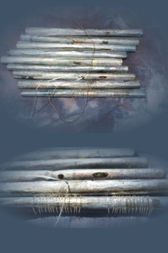 First I tried couching in a sort of brick stitch effect in a thicker silver thread. Then I decided the stitches needed to be closer together, in a chevron pattern. But when it was nearly finished I realised it looked boring, and the silver was overwhelming the blue.