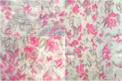 The second mistake was to make the squares too small, so hardly any of the already pretty faint transfer crayon design on the other side shows.